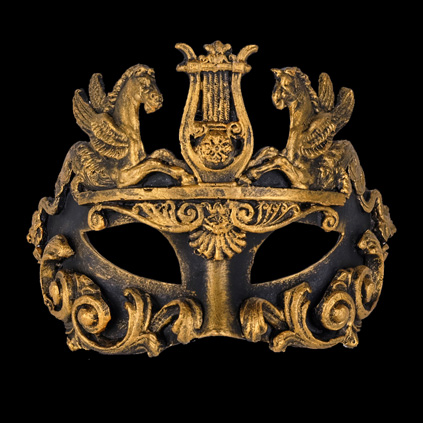 パーティーや舞踏会などで実際に被ってご使用することはもちろん(後ろに紐が付いています)美術オブジェとして壁に掛けて頂ければ妖艶なまでの美しさを放ちながら遠くヴェネチアの風に満たされるでしょう。細部にマイスターの匠の技が光る一級品をご堪能ください。