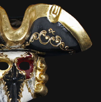 パーティーや舞踏会などで実際に被ってご使用することはもちろん(後ろに紐が付いています)美術オブジェとして壁に掛けて頂ければ妖艶なまでの美しさを放ちながら遠くヴェネチアの風に満たされるでしょう。細部にマイスターの匠の技が光る一級品をご堪能ください。