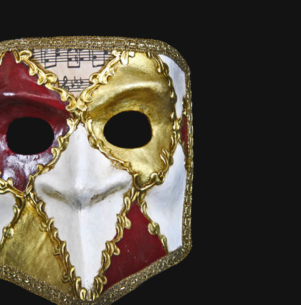 当店のマスクは、イタリアの工房で一点一点職人達によって作られた本物です。大量生産ではなく伝統の技による匠達の手作りのため仮面の一つ一つに若干の個性があり、装飾の位置、色使い、色目、生地の柄、 石の色、柄表情などが、実物と写真とは微妙に異なる場合がございますので予めご了承くださいませ。写真は見本になります。