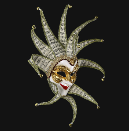 当店のマスクは、イタリアの工房で一点一点職人達によって作られた本物です。大量生産ではなく伝統の技による匠達の手作りのため仮面の一つ一つに若干の個性があり、装飾の位置、色使い、色目、生地の柄、 石の色、柄表情などが、実物と写真とは微妙に異なる場合がございますので予めご了承くださいませ。写真は見本になります。