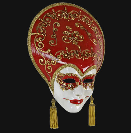 パーティーや舞踏会などで実際に被ってご使用することはもちろん(後ろに紐が付いています)美術オブジェとして壁に掛けて頂ければ妖艶なまでの美しさを放ちながら遠くヴェネチアの風に満たされるでしょう。細部にマイスターの匠の技が光る一級品をご堪能ください。